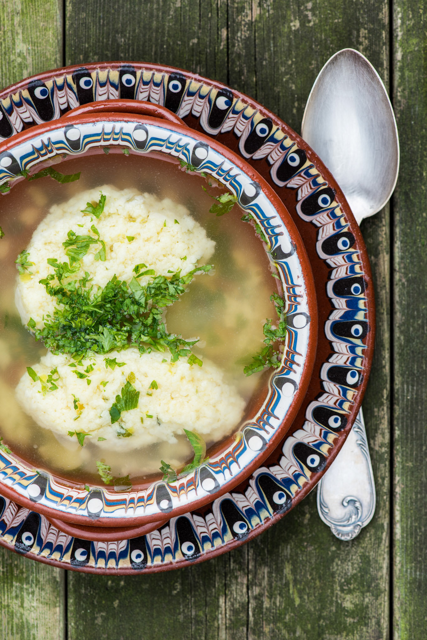 Celery soup with fresh parsley and croutons
