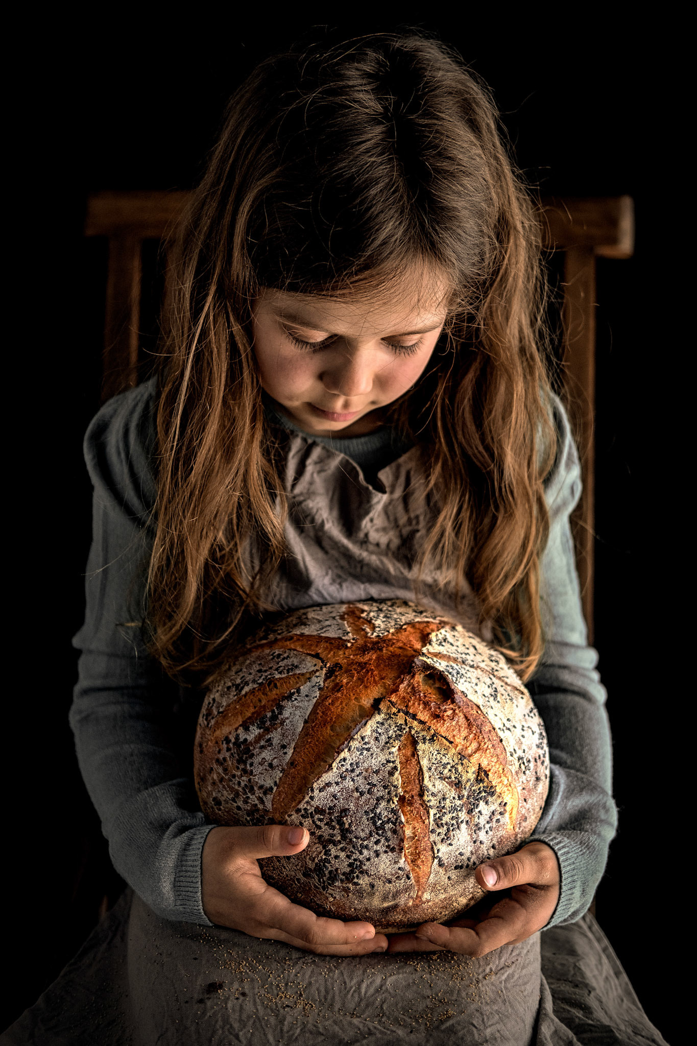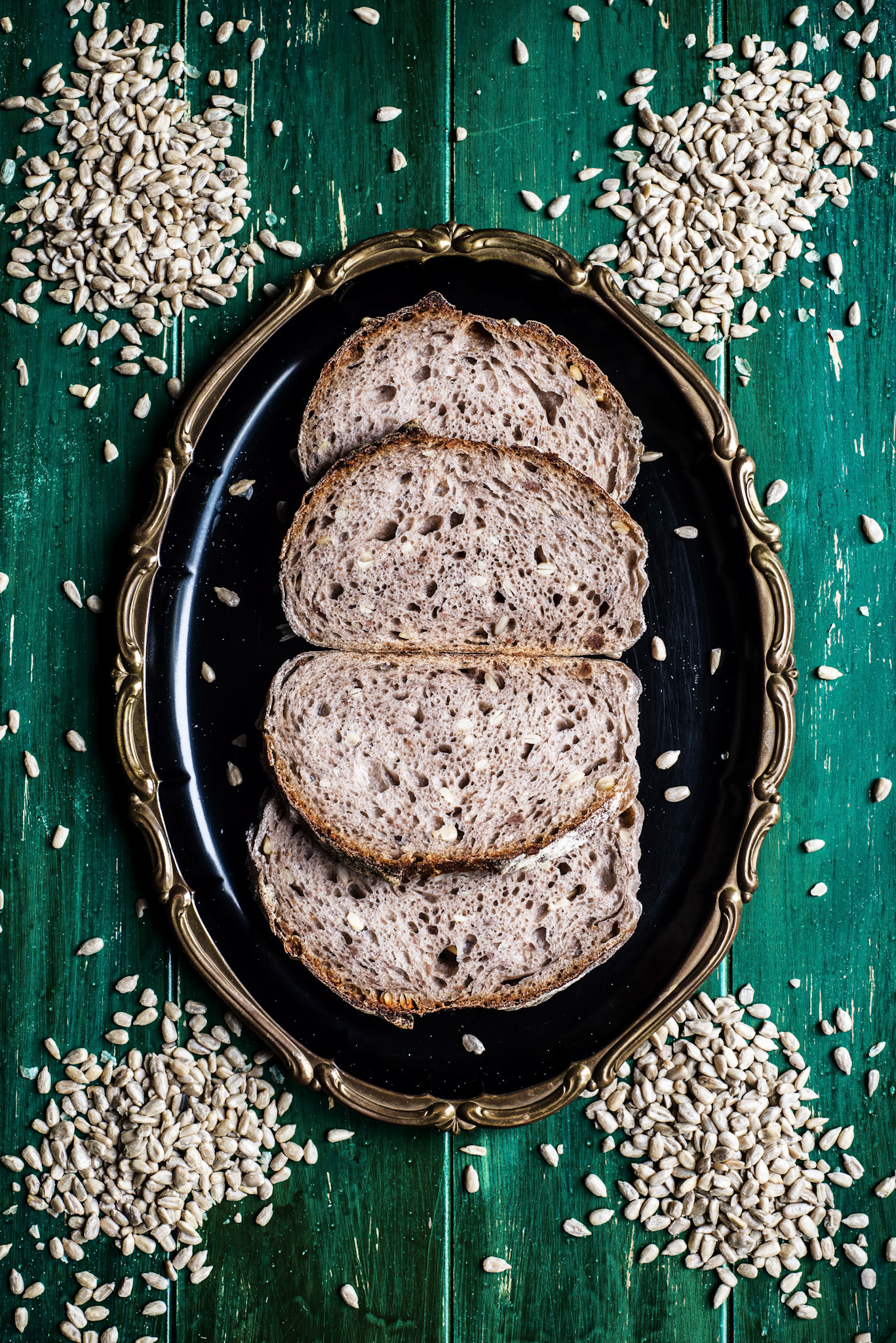 Spelt seed sourdough bread on a blue tableboard