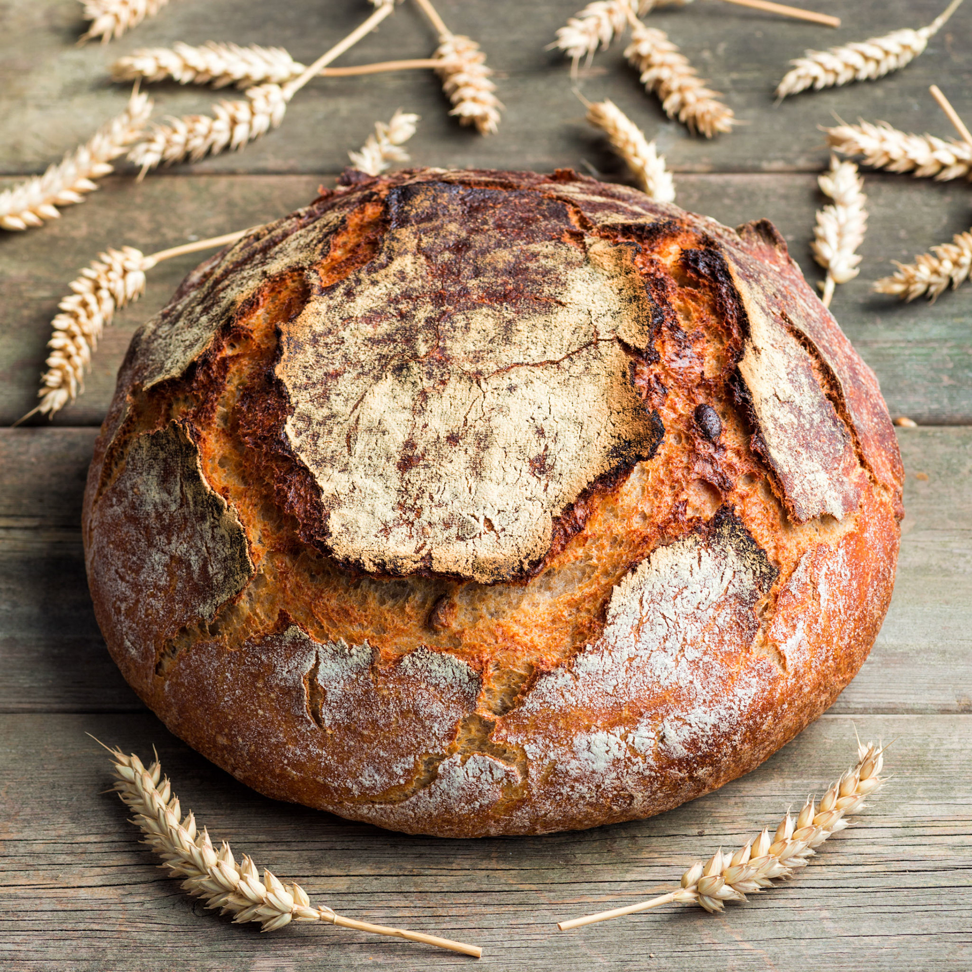 Mixed flour country bread on a wooden rustic table
