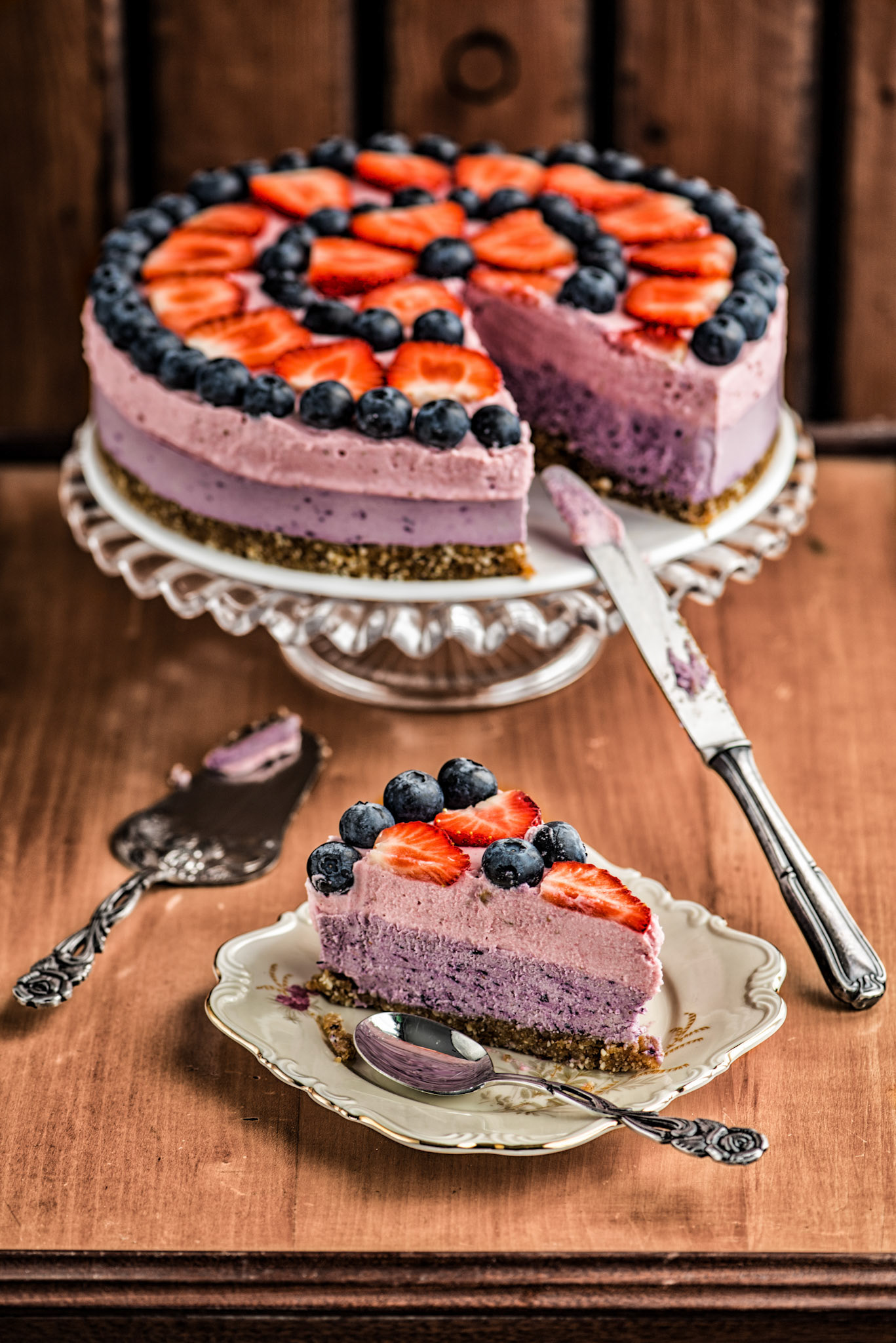 Chocolate cheese cake with a vintage presentation