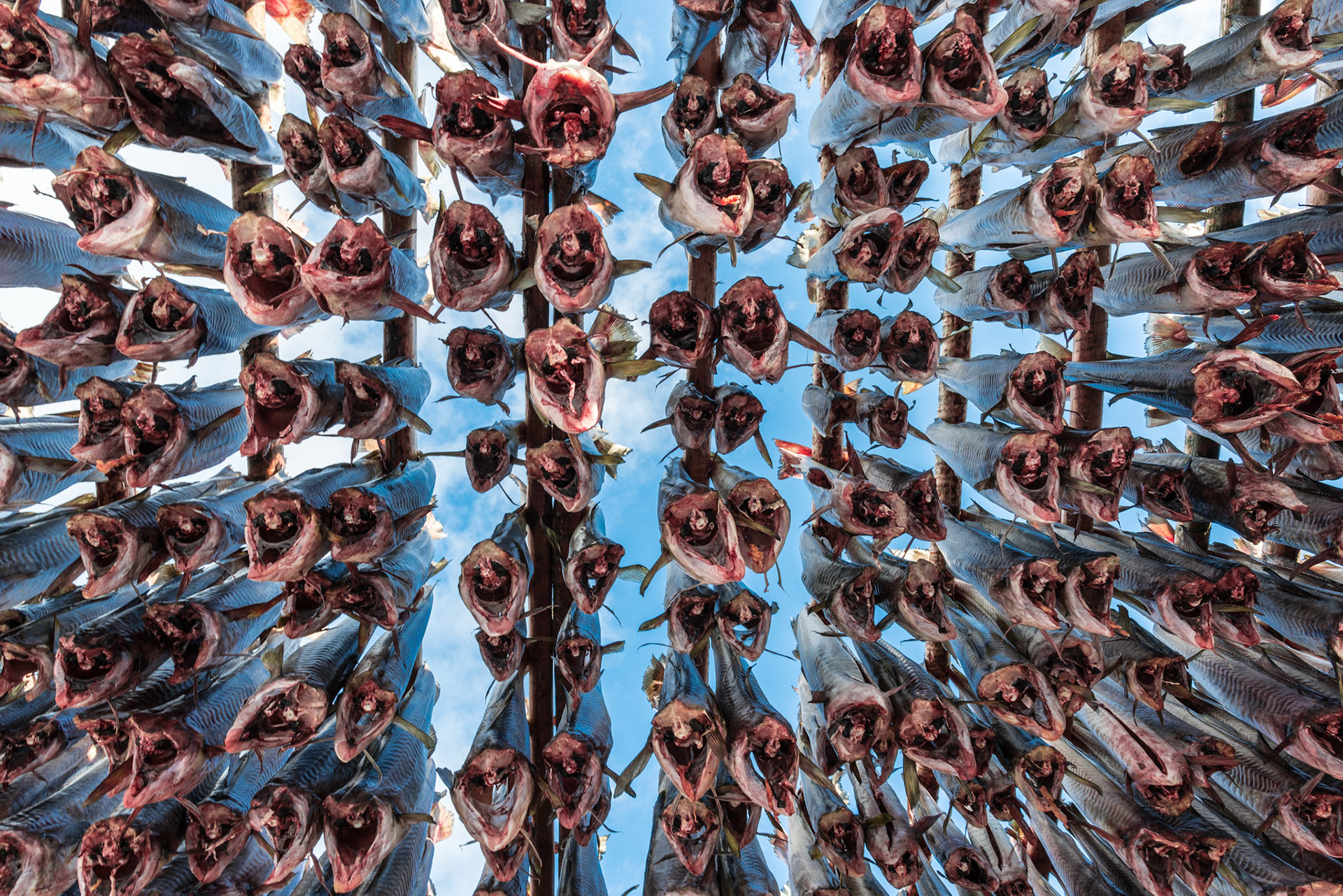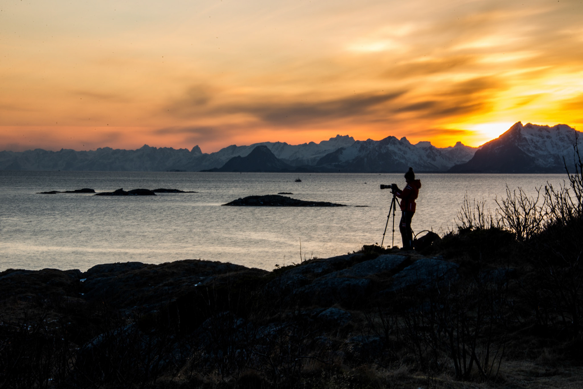 Sakrisoy, Lofoten, Norway at sunrise, view from the wooden pier