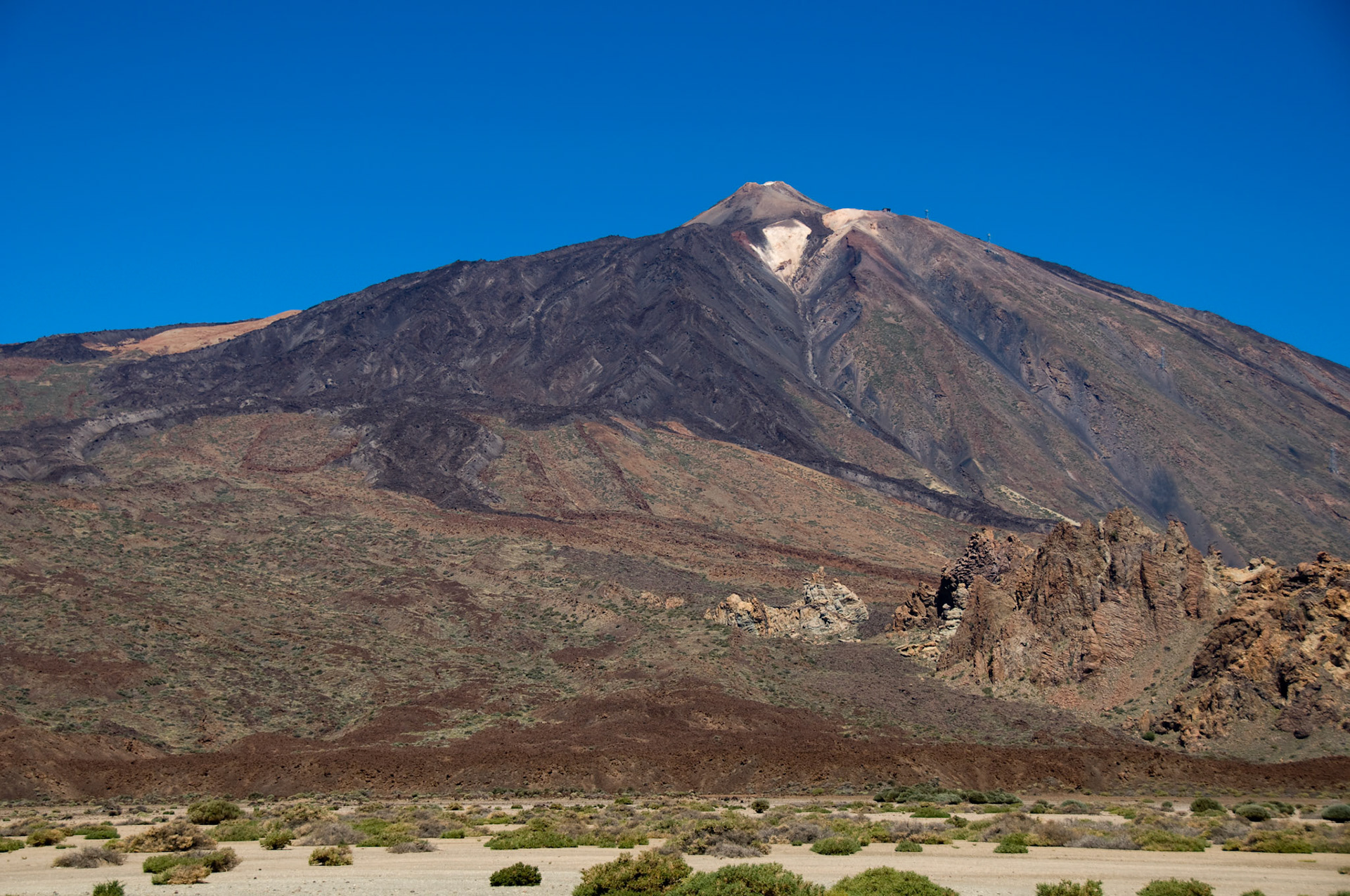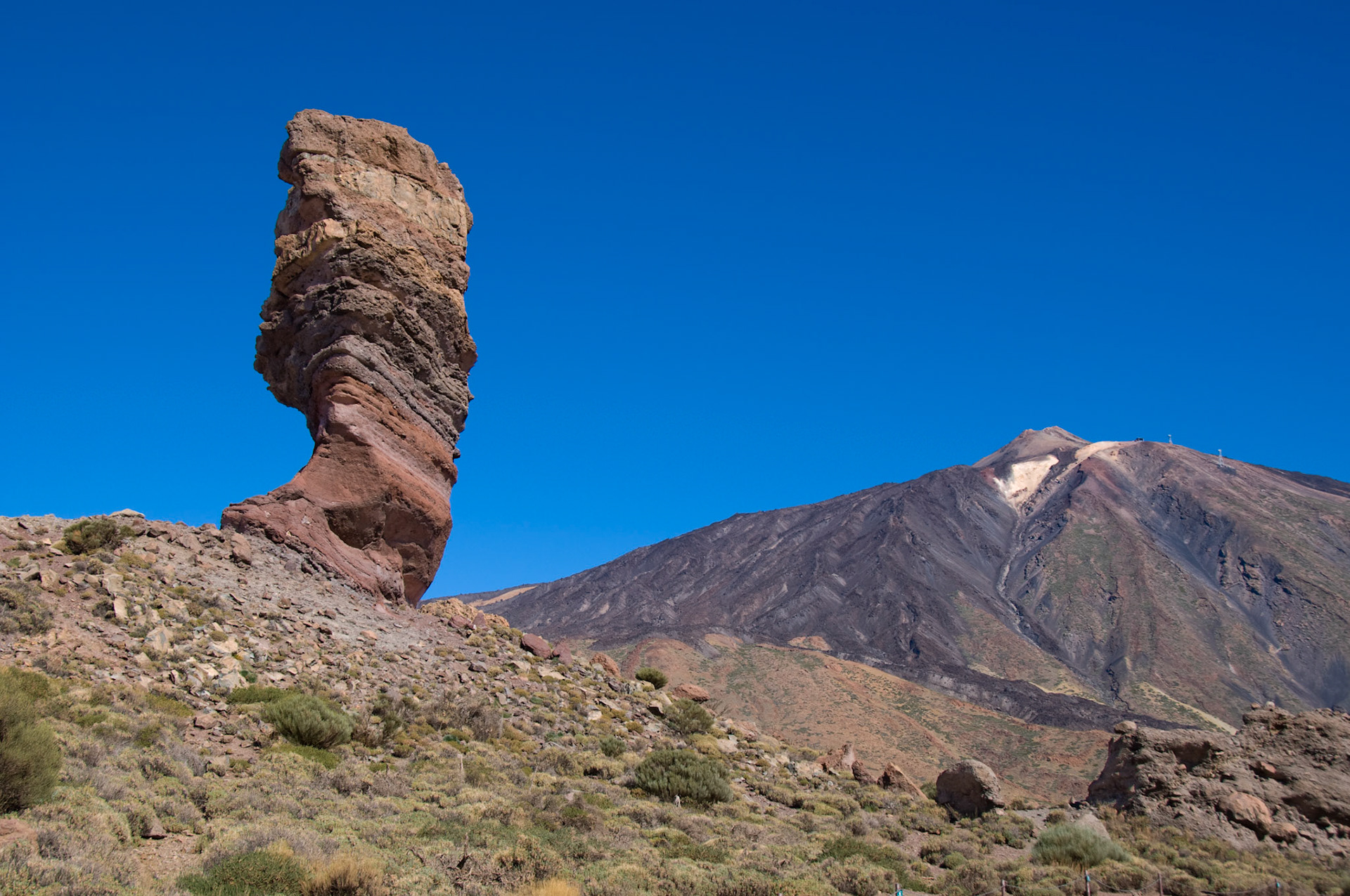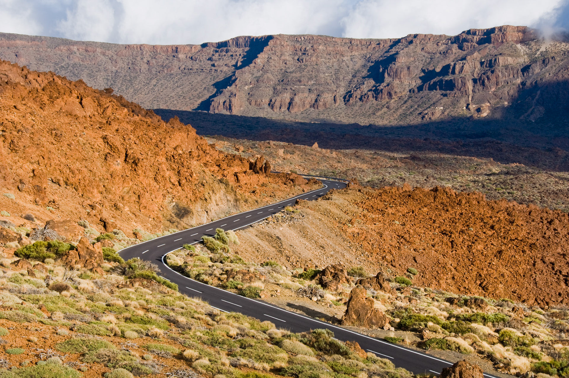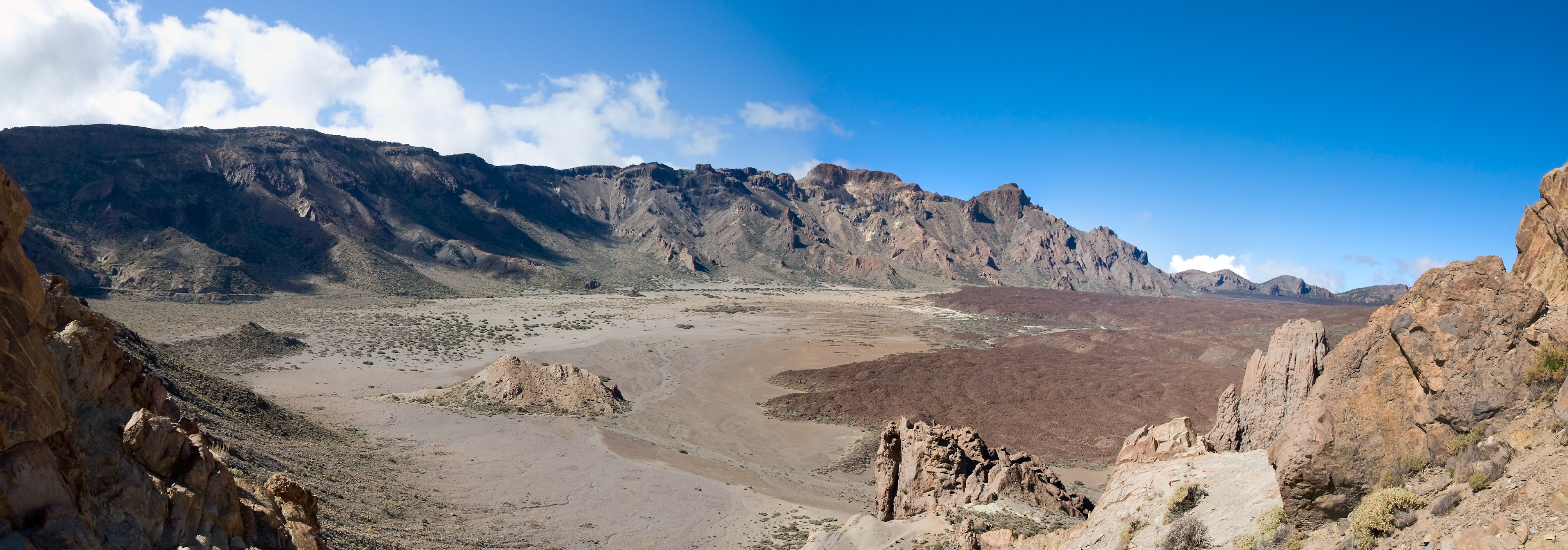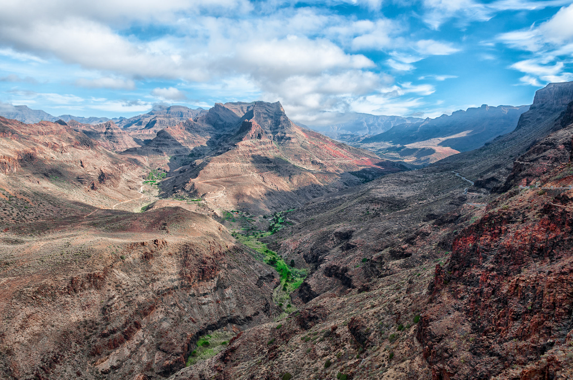 Straw umbrella with sunbeds with a nice view to the mountains and ocean